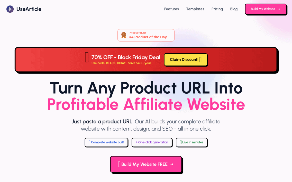 Build affiliate websites from product URLs instantly.