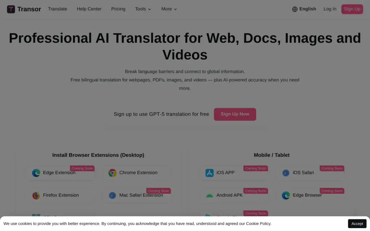 Translate websites, documents, images and videos instantly.