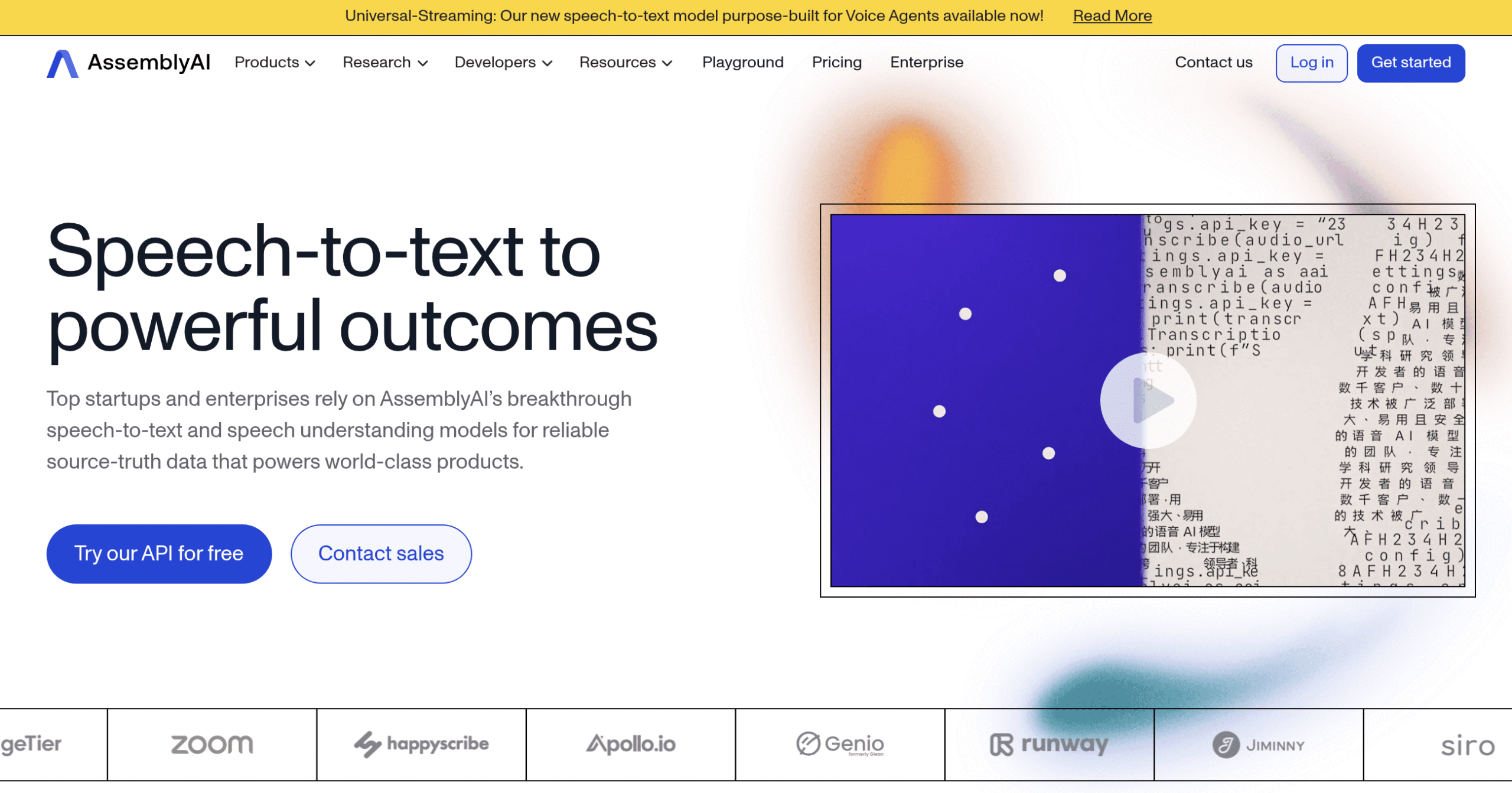 That’s where AssemblyAI comes in. This speech-to-text API transforms your audio and video files into accurate written transcripts in minutes, not hours.