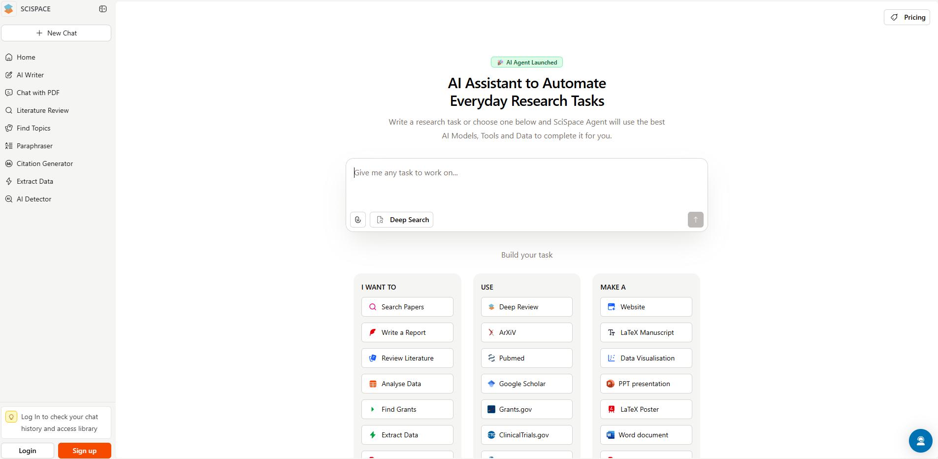 SciSpace offers both free and paid plans, though specific pricing details aren't clearly documented in the research.